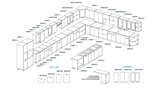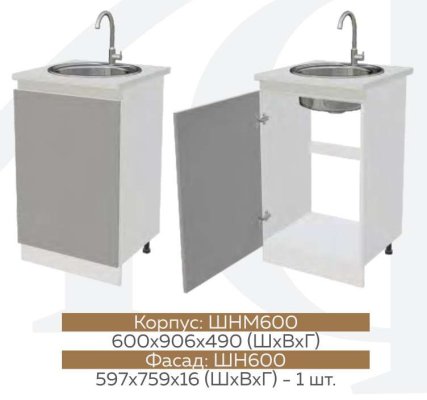 Глубина нижних шкафов без учета столешницы: 444 мм, с учетом столешницы 600 мм