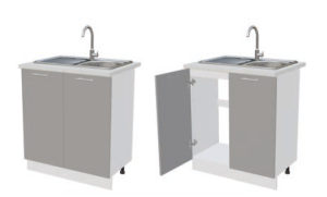 Глубина нижних шкафов без учета столешницы: 444 мм, с учетом столешницы 600 мм