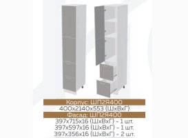 ШП2Я400 Пенал (Мрамор белый софт/Мрамор блэк софт)