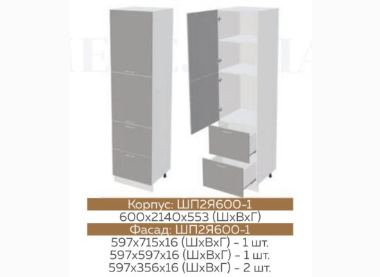 ШП2Я600-2 Пенал (Мрамор белый софт/Мрамор блэк софт)