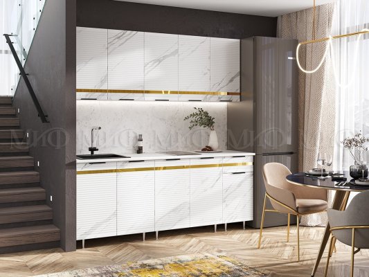 Модульная кухня Милена Мрамор Блэк софт/Мрамор белый софт (Миф)