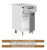Глубина нижних шкафов без учета столешницы:445 мм, с учетом столешницы 600 мм