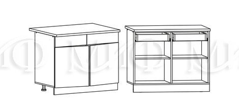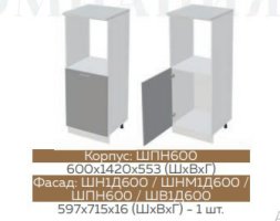 Глубина нижних шкафов без учета столешницы:490 мм, с учетом столешницы 600 мм