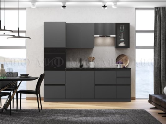 Модульная кухня Техно-6 Графит софт (Миф) на novocherkassk.mebelimart.ru за 19 282 руб. Быстрая доставка по Новочеркасску и Ростовской области. Работаем по всей России. Появились вопросы о наличии, комплектации товара? Задайте их менеджеру по телефону 8(800)505-49-71, в онлайн-чате на сайте или по почте. Оплачивайте покупки картой, наличными, безналичным расчетом. Доставка до подъезда, подъем и сборка мебели в Новочеркасске, цены уточняйте у оператора. Есть товар в наличии.