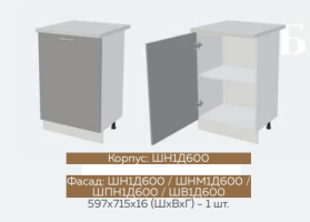 Глубина нижних шкафов без учета столешницы:445 мм, с учетом столешницы 600 мм
